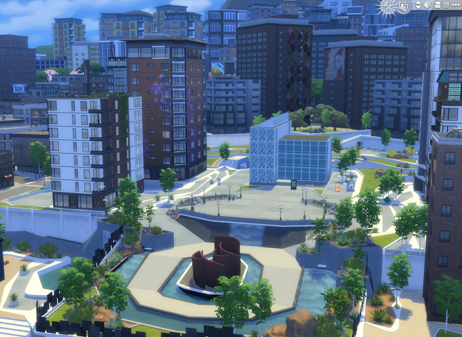 For Sims4 Get Together I was able to express my love of Europe through the old town of Windenburg. Done on a tight schedule this large world with seven lots was particularly challenging due to time and performance constraints. This was also the first world to be done mostly through road and surface modeling with little terrain editing so I needed to work closely with engineers so that it would all work smoothly.